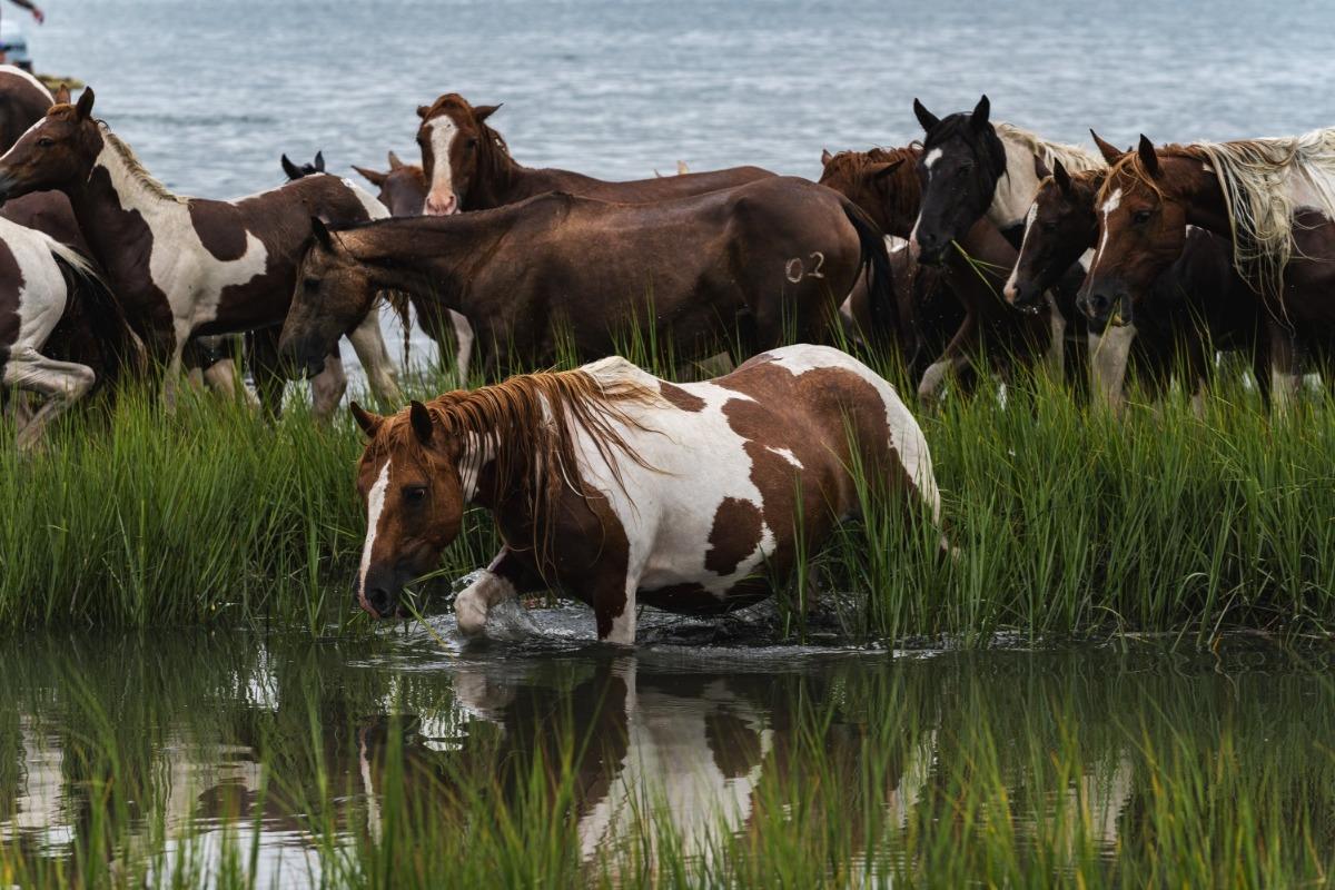 After a successful Pony Swim, the ponies will have an opportunity to rest and recuperate before the Pony Auction, which takes place on Thursday. Auction proceeds go towards the Chincoteague Volunteer Fire Company, which helps care for the ponies and maintains their island habitat.